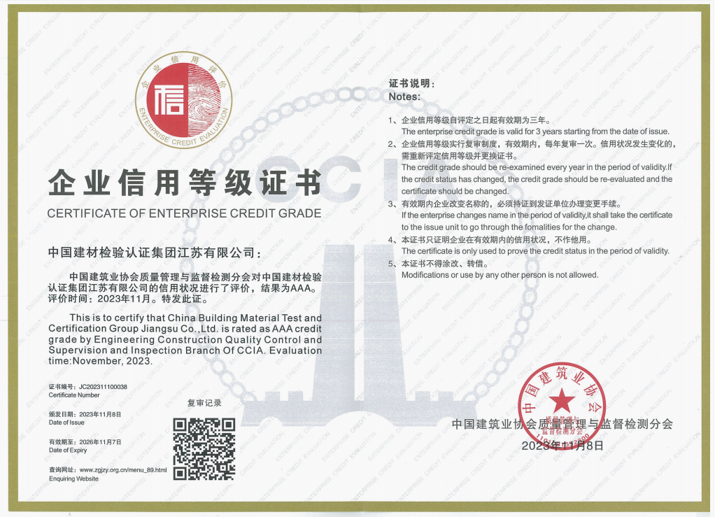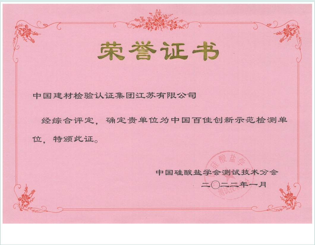 中國(guó)建材檢驗(yàn)認(rèn)證集團(tuán)江蘇有限公司,隸屬于國(guó)檢集團(tuán),總部位于蘇州工業(yè)園區(qū)和順路1號(hào),于2005年11月16日成立,試驗(yàn)室面積約11000平方。